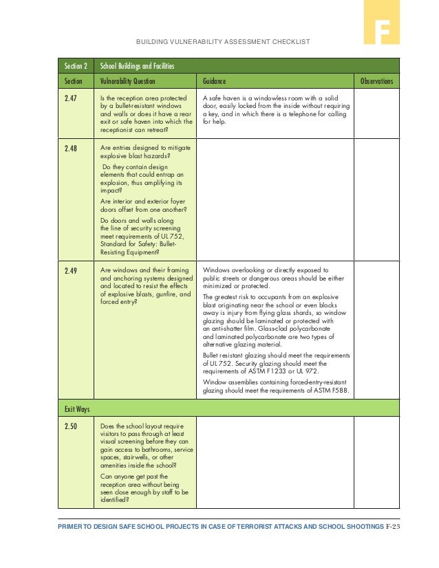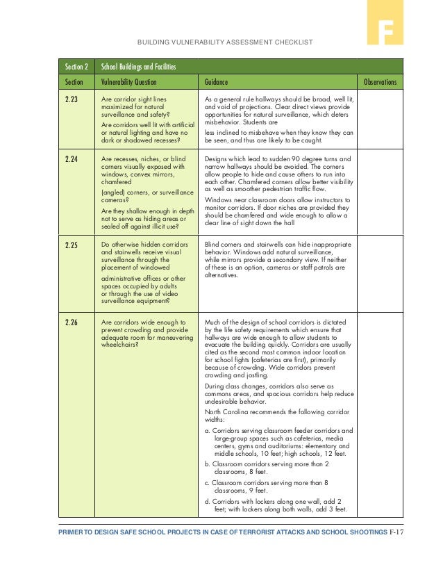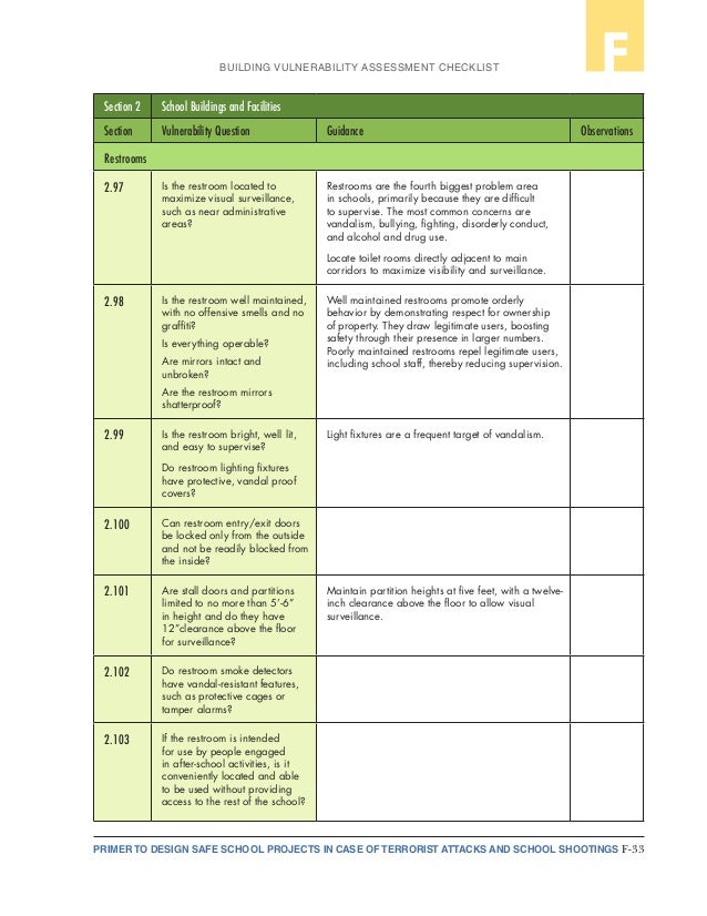 About the Checklist This checklist is designed for assessing the safety and security of school buildings and grounds. Created by the National Clearinghouse for Educational Facilities and funded by the U.S. Department of Education's Office of Safe and Drug-Free ... Fetch Document