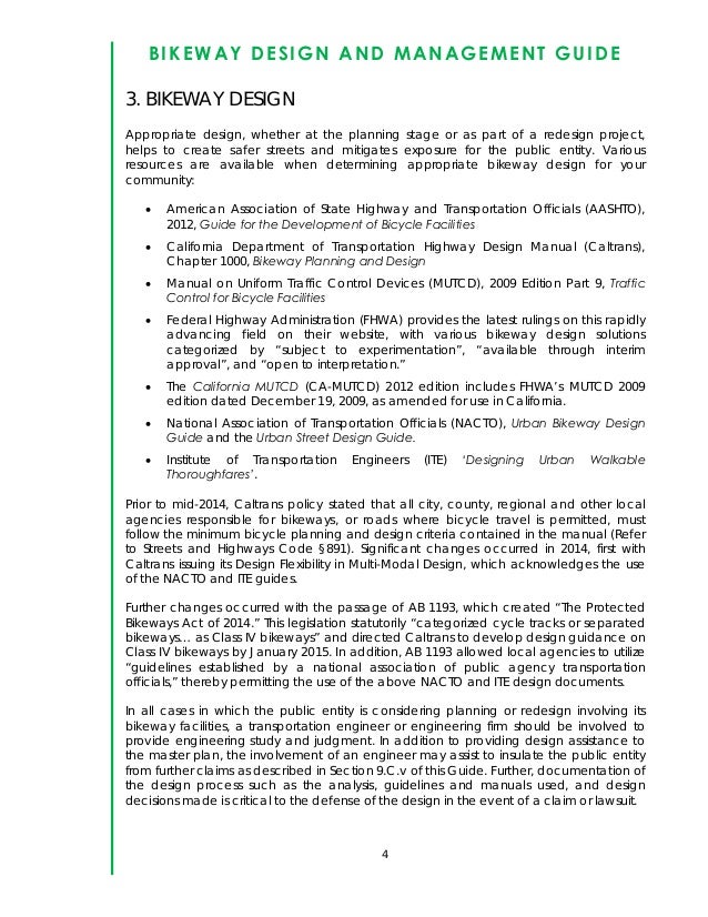 A. Accessible Shared Use Path Design 1. General: Applicable portions from the following draft documents were used to develop this section. a. AASHTO Bike Guide: The fourth edition (2012) of the AASHTO “Guide for the Development of Bicycle Facilities” (or AASHTO Bike Guide). References made to the AASHTO Bike Guide within this section are ... Get Doc