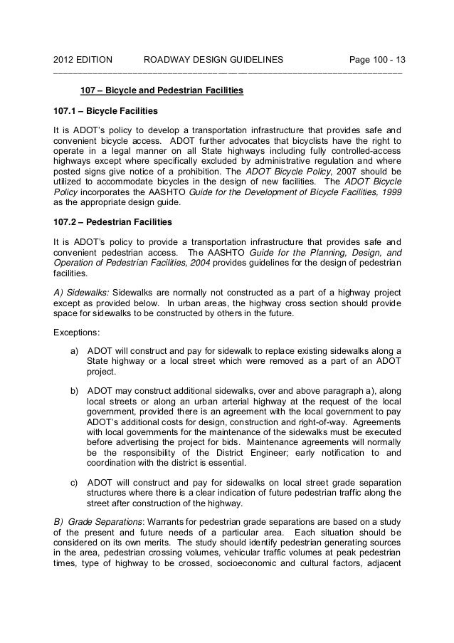 The purpose of this chapter is to provide guidance for bicycle and pedestrian facilities on State Highways. Other chapters address the design of intersections, interchanges, urban design, and A thorough guide for bicycle and pedestrian design is (Based on AASHTO Minimums) Average Running ... Fetch Here